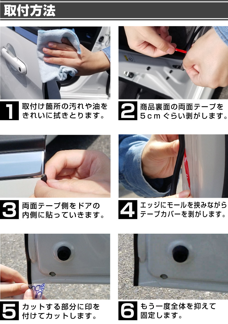 トップ > サプライ品 > 傷防止 ドアモール ドアプロテクター 風切り音防止 騒音低減 キズ防止 カー用品 全長8M 選べる2色 ブラック ホワイト【メール便対象/代引き・配達日時指定不可】