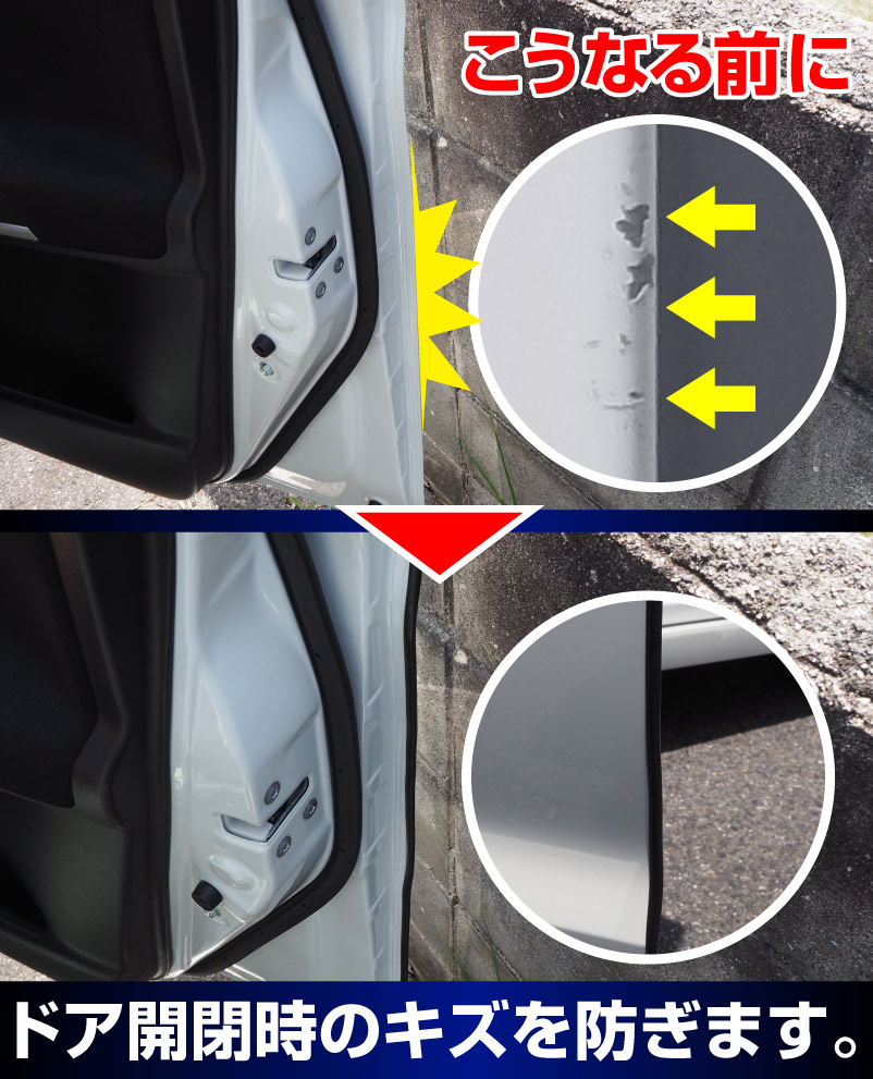 サイドドアの開閉時にうっかり壁や他の車と接触した際の衝撃や傷などを抑える効果があります。