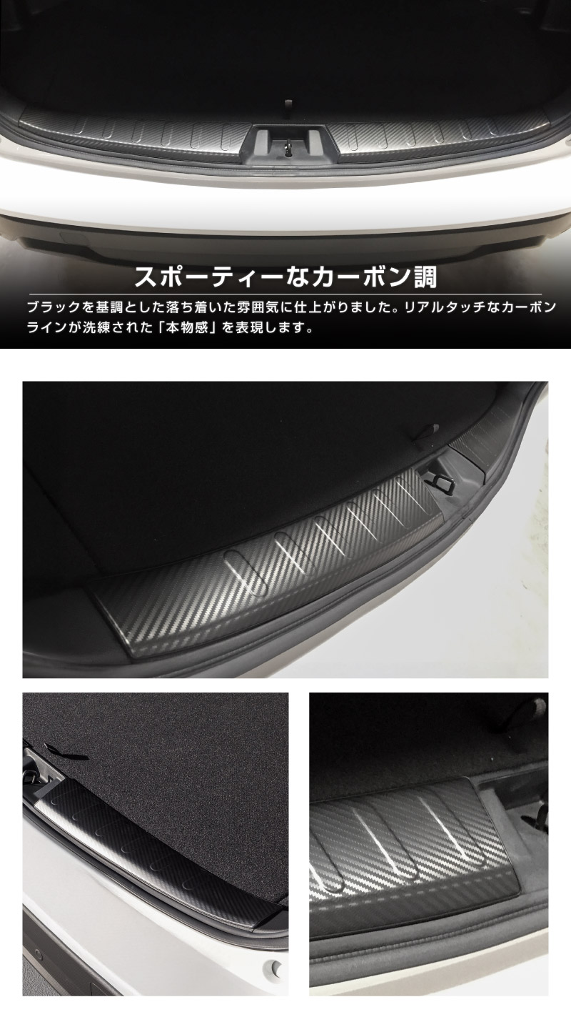フォレスター SK系 ラゲッジスカッフプレート 2P 車体保護ゴム付き 選べる2カラー ブラックヘアライン カーボン調|スバル SUBARU FORESTER SK系 専用 内装 保護 カスタム パーツ ドレスアップ アクセサリー 社外品 オプション