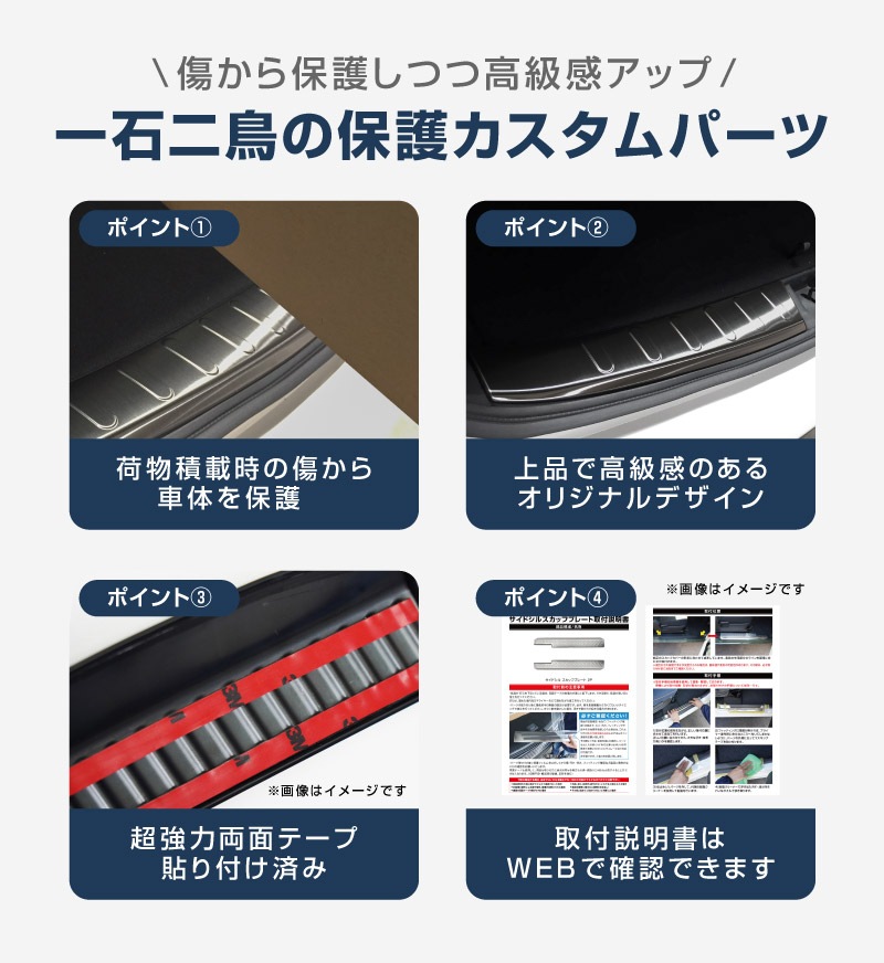 荷物の積み下ろしなどで傷がつきやすいトランク入り口部分をしっかりと保護し、大切な愛車を守ります。