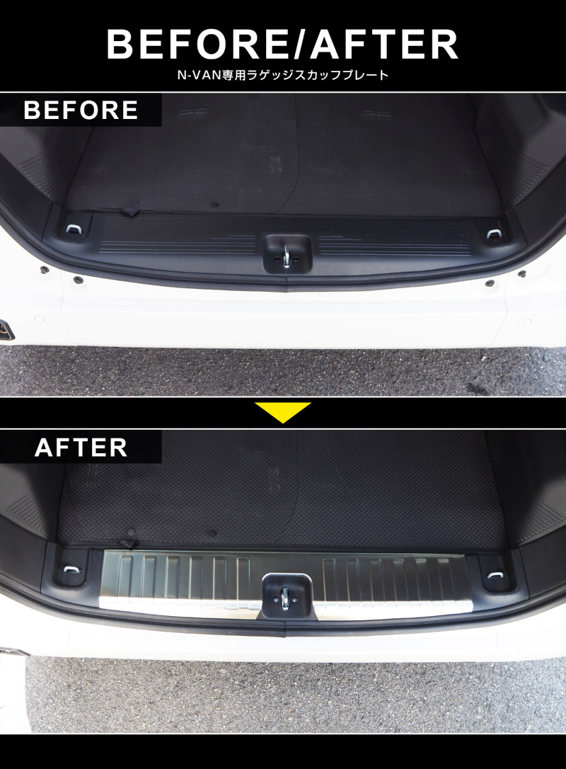 N-VAN ラゲッジスカッフ 1P 選べる2カラー ヘアラインシルバー ヘアラインブラック|ホンダ HONDA エヌバン カスタム 専用 パーツ ドレスアップ アクセサリー 社外品 オプション【予約販売/ブラック:2月20日頃入荷予定】