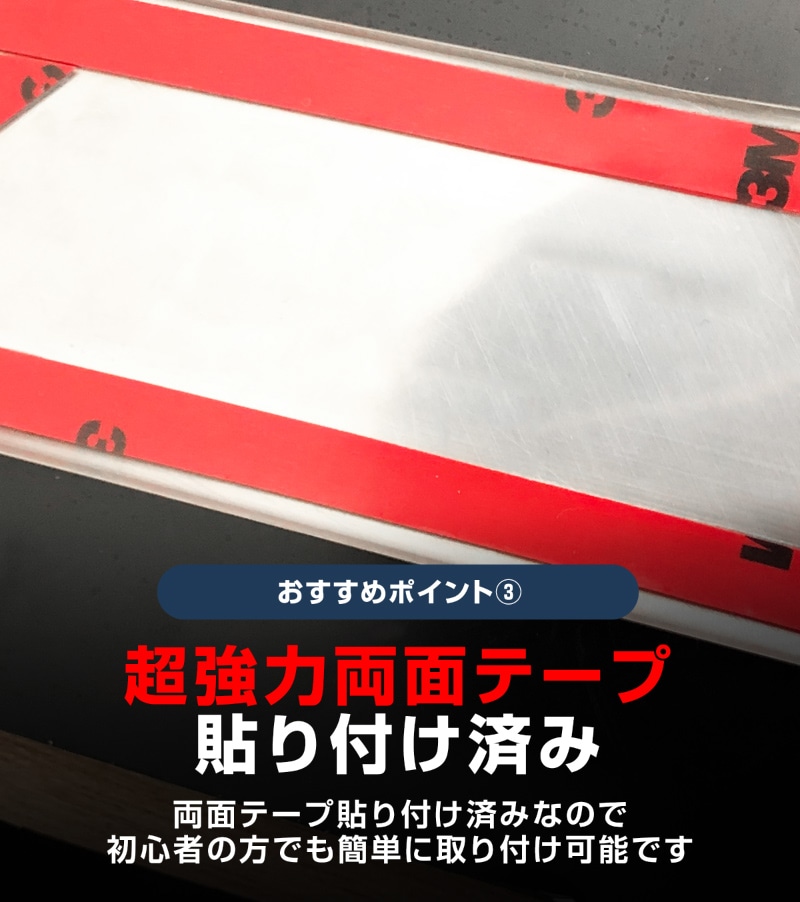 商品裏面に装着済みの、両面テープで取り付けるだけで簡単に商品到着後すぐにカスタムいただけます。