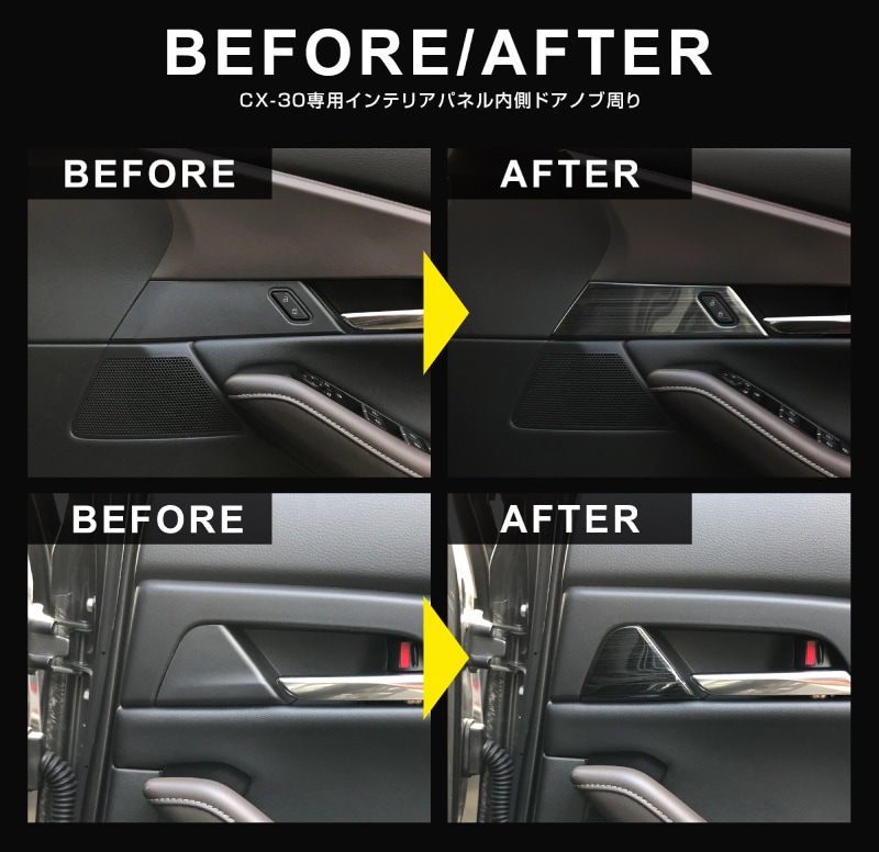 CX-30 インテリアパネル 内側ドアノブ周りパネル 4P 艶有ブラックヘアライン|マツダ MAZDA CX30 専用 内装 カスタム パーツ ドレスアップ アクセサリー 社外品