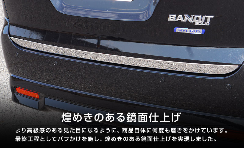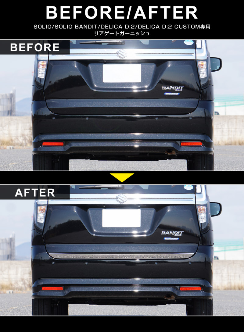 トップ > SUZUKI スズキ > ソリオ/ソリオ バンディット【2020(令和2)年12月〜】SOLIO BANDIT MA47S MA37S MA27S > 外装パーツ ソリオ/ソリオ バンディット(SOLIO BANDIT) > 新型ソリオ ソリオバンディット デリカD:2 デリカD:2カスタム リアゲート ガーニッシュ 鏡面仕上げ 1P|スズキ SUZUKI SOLIO BANDIT MAD7S 5AA-MA37S 5BA-MA27S MA27S MA37S 三菱 MITSUBISHI DELICA D2 CUSTOM 専用 外装 カスタム パーツ ドレスアップ アクセサリー 社外品 オプション エアロ