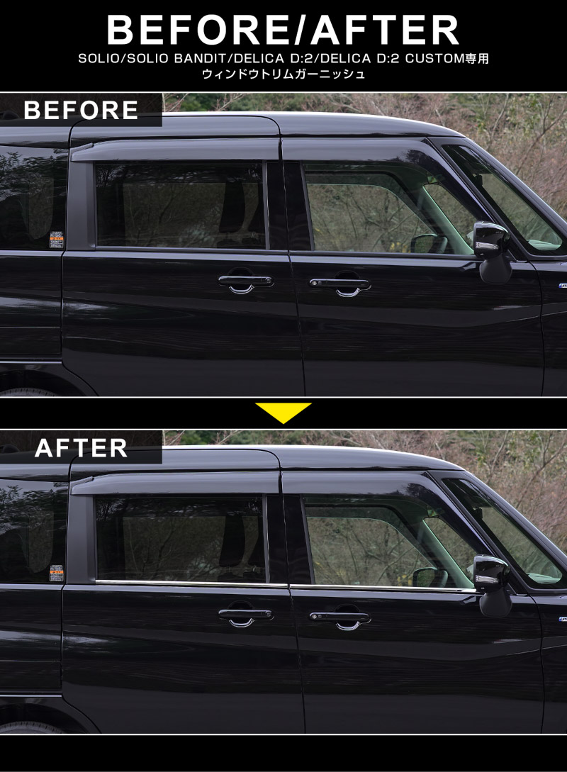 【セット割】新型ソリオ ソリオバンディット デリカD:2 デリカD:2カスタム サイドドア & ウィンドウトリム ガーニッシュ 外装パーツセット 8P 鏡面仕上げ |スズキ SUZUKI SOLIO BANDIT MAD7S 5AA-MA37S 5BA-MA27S MA27S MA37S 三菱 MITSUBISHI DELICA D2 CUSTOM 専用 外装 カスタム パーツ ドレスアップ アクセサリー 社外品 エアロ オプション