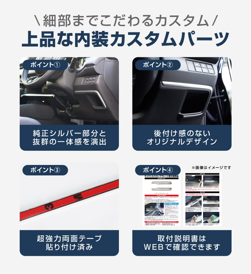 新型ヴェゼル サイドステップ 内側スカッフプレート フロント・リアセット 4P シルバーヘアライン/ブラックヘアライン 全2色 2024年マイナーチェンジ後対応|ホンダ HONDA VEZEL RV系 専用 内装 カスタム パーツ ドレスアップ アクセサリー 社外品【予約販売/シルバー:12月20日頃入荷予定】