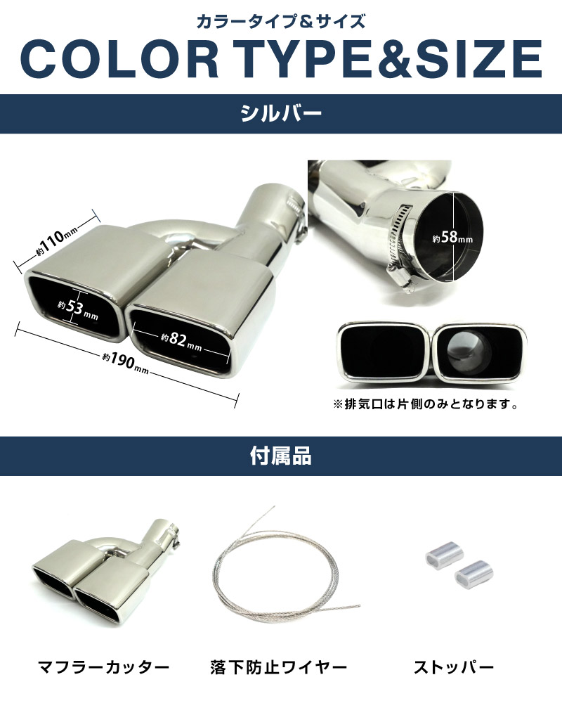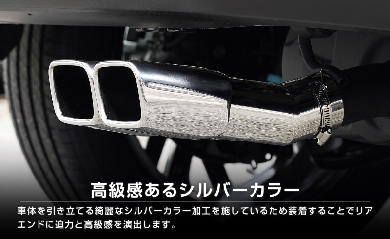 トップ > TOYOTA トヨタ > カローラクロス(COROLLA CROSS) > 外装パーツ カローラクロス(COROLLA CROSS) > 新型カローラクロス マフラーカッター スクエアタイプ 2本出し シルバー 1P 落下防止ワイヤ ストッパー付属 2025年マイナーチェンジ後対応 サビに強いステンレス製|トヨタ TOYOTA COROLLA CROSS 6AA-ZVG11 3BA-ZSG10 6AA-ZVG15 カスタム 専用 サイド 外装 パーツ【予約販売/2026年1月20日頃入荷予定】