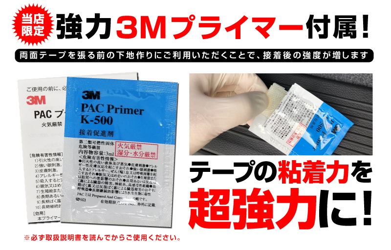 商品裏面に装着済みの、両面テープで取り付けるだけで簡単に商品到着後すぐにカスタムいただけます。