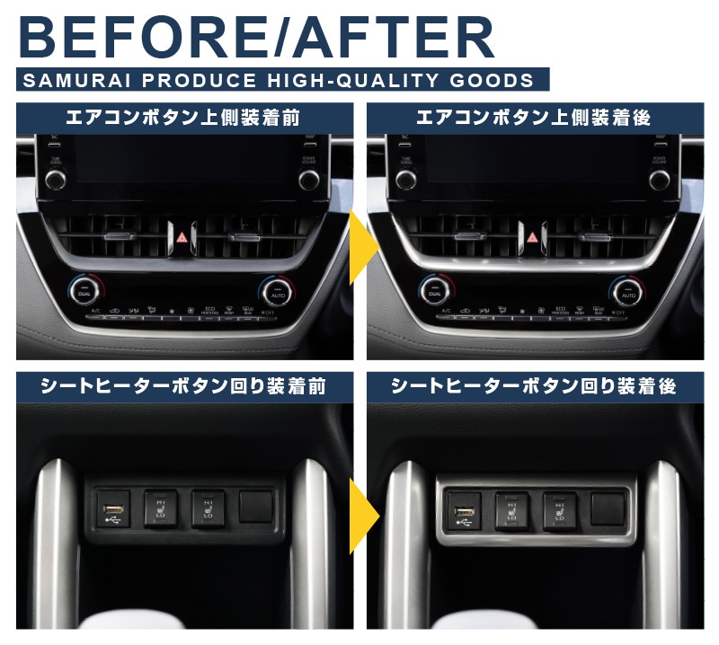 カローラクロス エアコンボタンパネル上側 & シートヒータボタン周り インテリアパネル 2P サテンシルバー|トヨタ TOYOTA COROLLA CROSS 6AA-ZVG11 3BA-ZSG10 6AA-ZVG15 カスタム 専用 内装 インテリアパネル