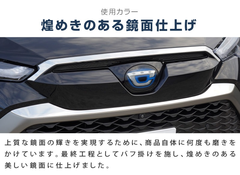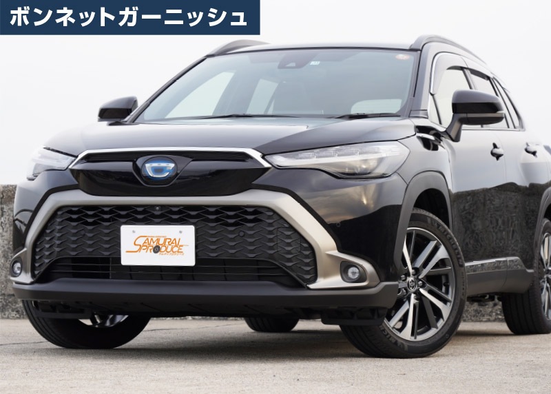 カローラクロス専用設計(日本仕様)、フロントボンネット前面とフロントグリル上部に装着するカスタムパーツセットです。