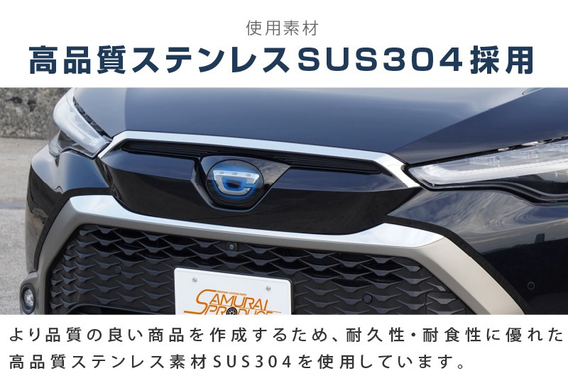 素材には耐久性に優れたステンレスSUS304を採用しており、末永くお車と一緒にお付き合いいただけます。