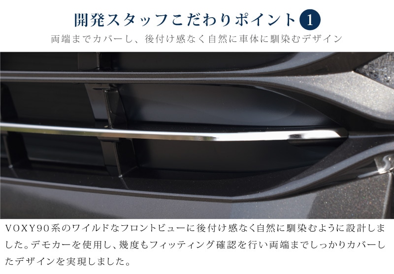 新型ヴォクシー 90系 フロントエンブレム下 グリルガーニッシュ 4P 鏡面仕上げ|トヨタ TOYOTA VOXY 90 95 専用 外装 カスタム パーツ グリル ドレスアップ アクセサリー 社外品 オプション エアロ【予約販売/12月20日頃入荷予定】