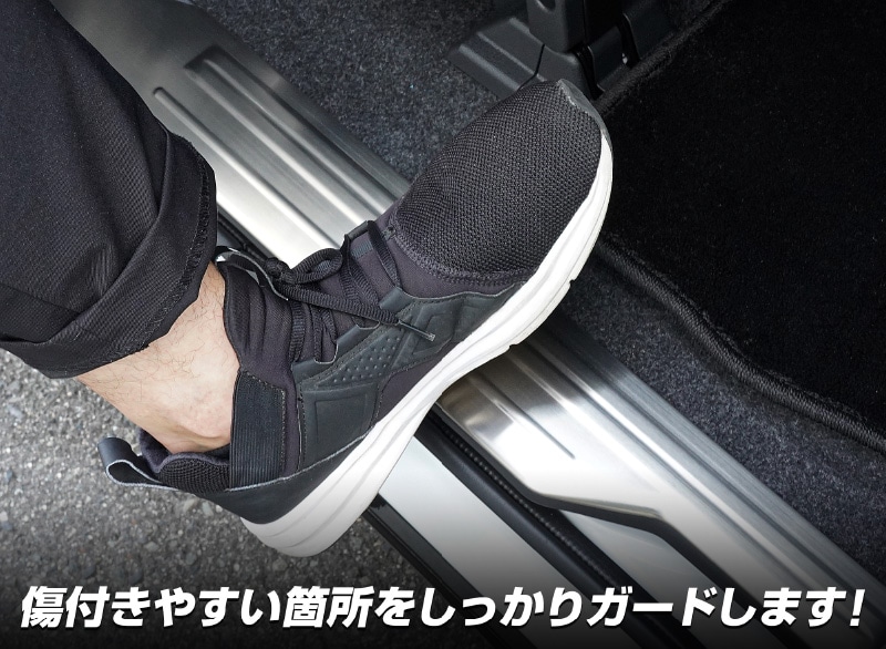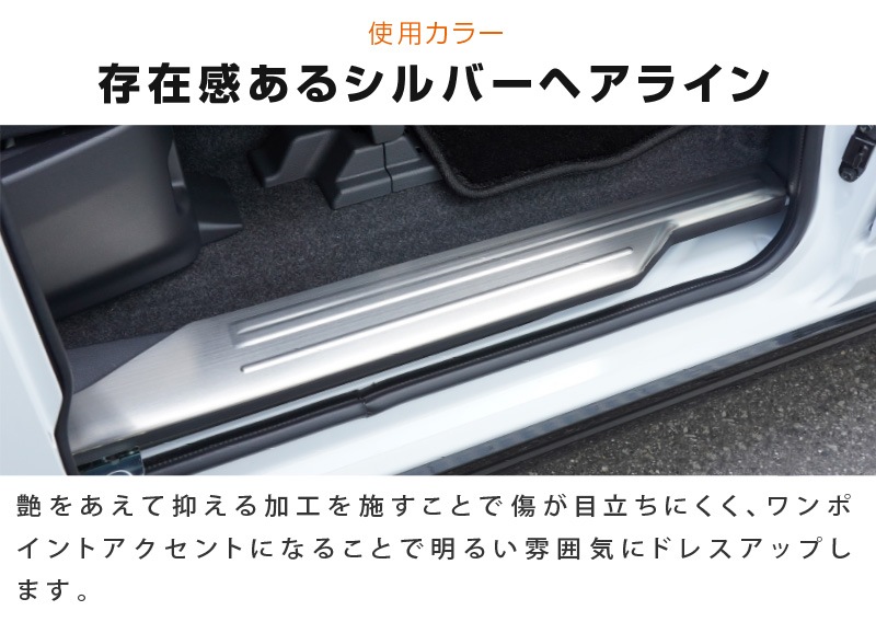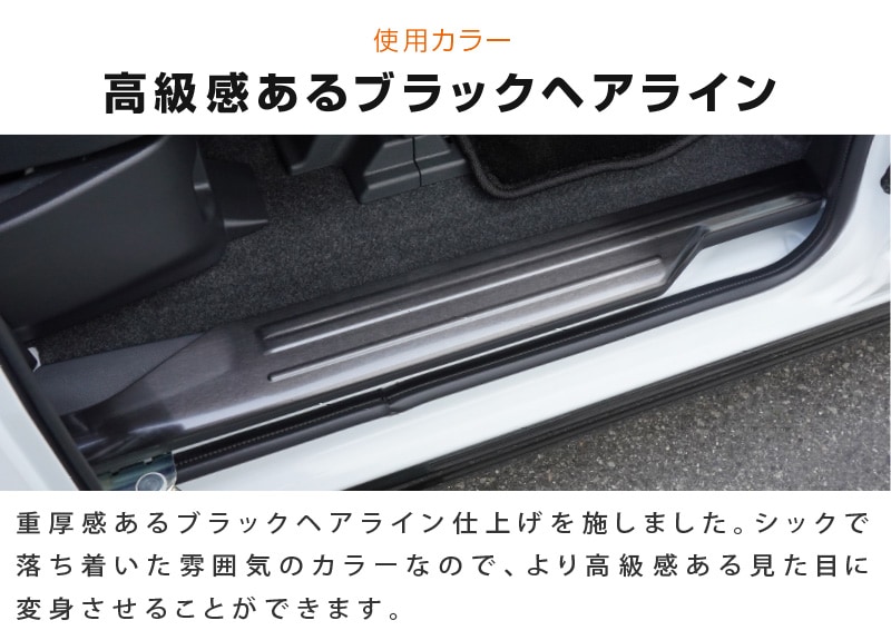新型アトレー/ハイゼットカーゴ サイドステップ 内側スカッフプレート フロント・リアセット 4P シルバーヘアライン/ブラックヘアライン 全2色|ダイハツ DAIHATSU ATRAI S700V/S710V 専用 内装 保護【予約販売/ブラック:12月20日頃入荷予定】