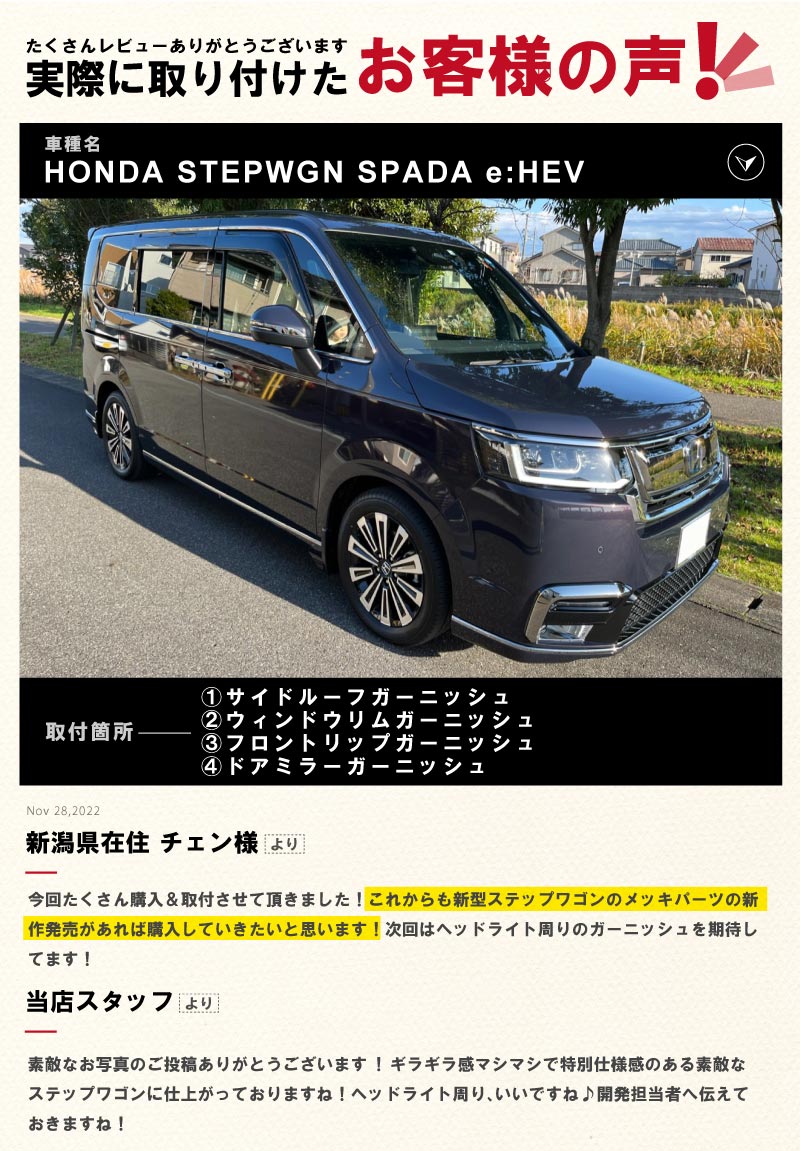 新型ステップワゴン スパーダ(SPADA)専用 RP系 フロントグリルガーニッシュ 4P 鏡面仕上げ|ホンダ HONDA STEPWGN 専用 RP6/RP7/RP8 外装 フロント カスタム パーツ ドレスアップ アクセサリー 社外品 エアロ
