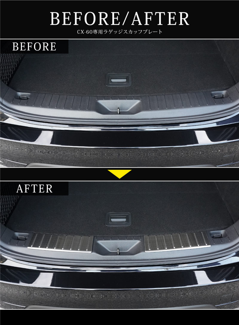 トップ > MAZDA マツダ > CX-60 > CX-60 KH系 ラゲッジ スカッフプレート 2P 車体保護ゴム付き 選べる3カラー シルバー/ブラック/カーボン調|マツダ MAZDA CX60 専用 内装 トランク リア 保護 パーツ ドレスアップ アクセサリー 社外品