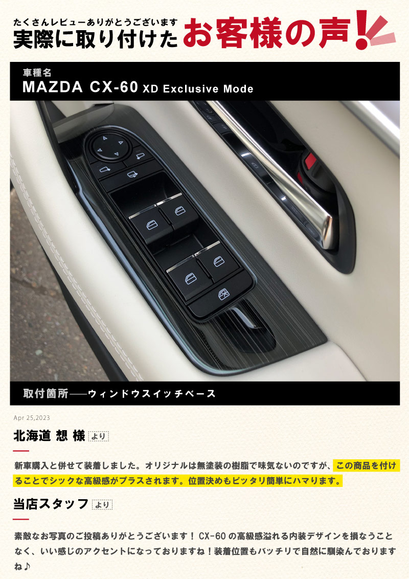トップ > MAZDA マツダ > CX-60 > 内装パーツ CX60 KH系 > CX-60 KH系 ウィンドウスイッチベース インテリアパネル 4P 選べる2色 サテンシルバー/艶有ブラックヘアライン|マツダ MAZDA CX60 専用 内装 インテリア スイッチ パネル カスタム パーツ ドレスアップ アクセサリー 社外品