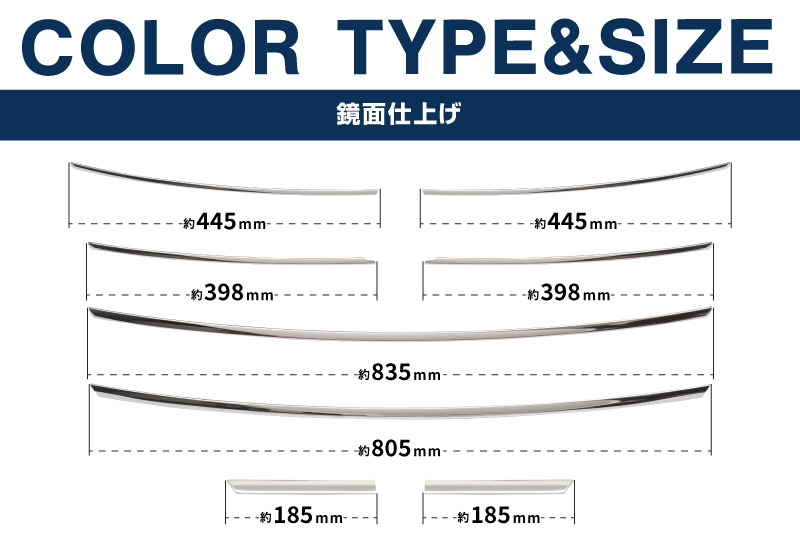 カラーは美しい鏡面加工を施しており、純正メッキモールとのカラー相性抜群!