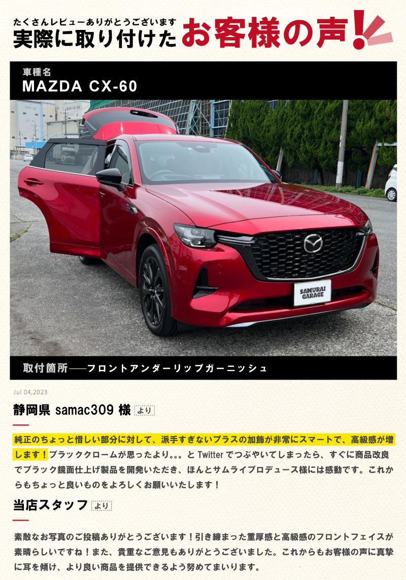 【セット割】CX-60 KH系 ガソリン ディーゼル 専用 フロントバンパー & サイドバッジ ガーニッシュ 外装パーツセット 鏡面仕上げ|マツダ MAZDA CX60 専用 外装 サイド シグネチャー カスタム パーツ ドレスアップ アクセサリー 社外品 エアロ【予約販売/1月30日頃入荷予定】
