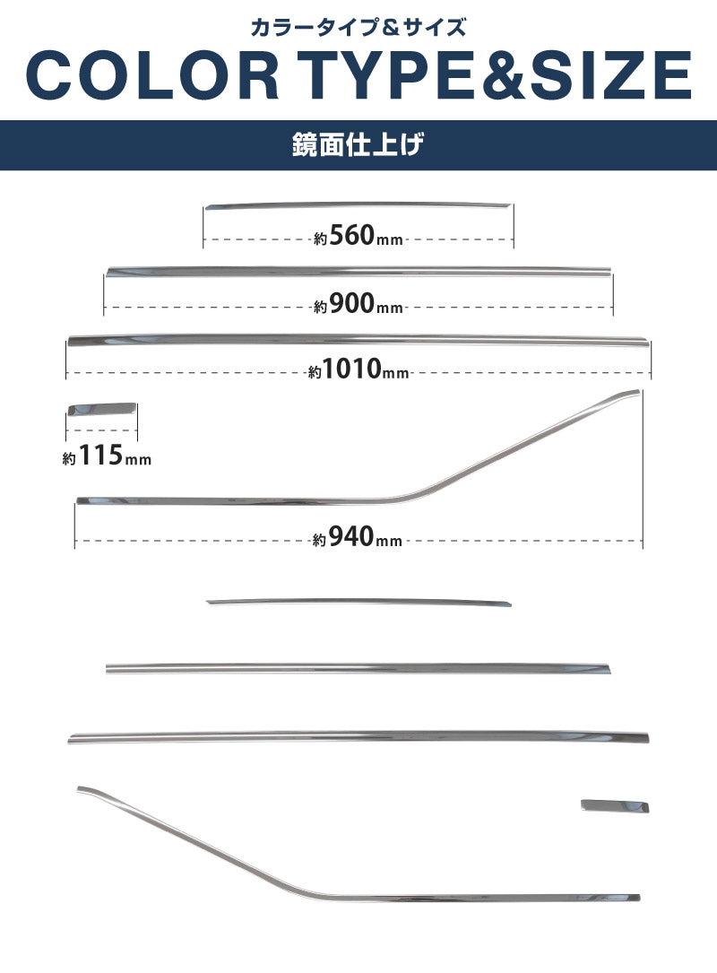 車体形状に合わせて製作しており、美しい鏡面仕上げにより更なる高級感を演出します。