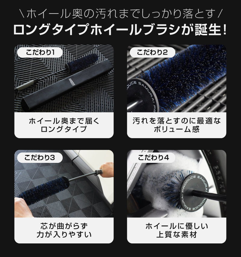 サムライ ホイールブラシ Lサイズ 適度な硬度で汚れを効果的に除去 洗車ブラシ タイヤブラシ ハブ用ブラシ キズ防止
