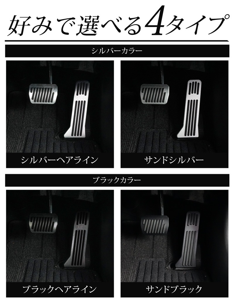 マツダ CX-5 KF系 CX-8 KG系 MAZDA2 DJ系 後期 共通 アルミペダルカバー 2P 滑り止めゴム付き 選べる2タイプ 2カラー シルバー ブラック はめ込むだけの簡単取付|マツダ CX5 CX8 MAZDA2 専用 保護 足元 ブレーキ ペダル カスタムパーツ ドレスアップ アクセサリー 社外品 エアロ