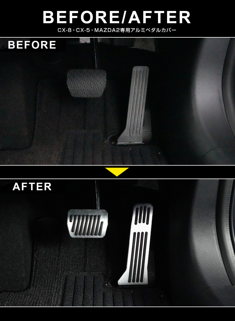 マツダ MAZDA2、CX-5、CX-8共通のブレーキ・アクセルペダルに装着するペダルカバーです。