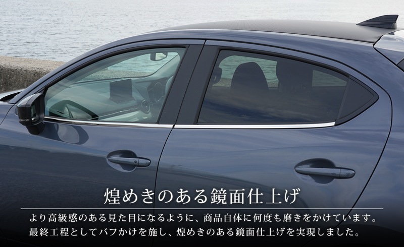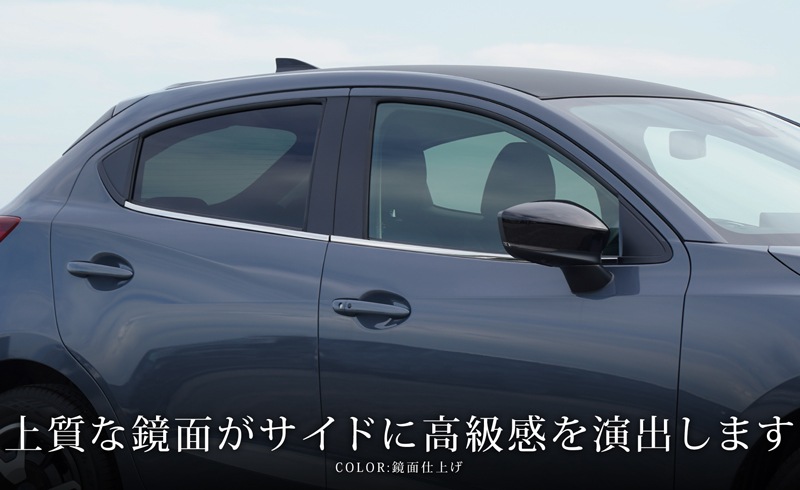 MAZDA2 デミオ DJ系 ウィンドウトリムガーニッシュ 4P 左右セット 選べる2色 鏡面仕上げ ブラック鏡面仕上げ|マツダ マツダ2 DEMIO 専用 外装 フロント グリル カスタム パーツ ドレスアップ アクセサリー 社外品 エアロ【予約販売/鏡面仕上げ:12月20日頃入荷予定】
