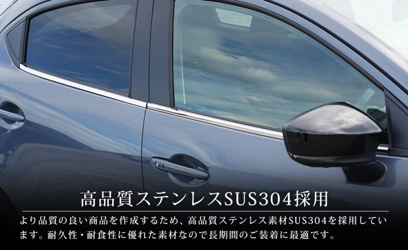 素材には耐久性に優れた高品質ステンレスSUS304を採用しており、末永くお車と一緒にお付き合いいただけます。