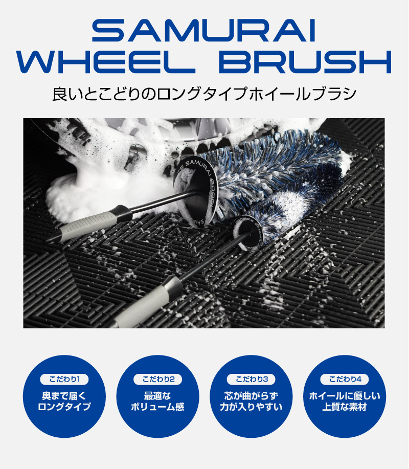 サムライ ホイールブラシ Sサイズ 適度な硬度で汚れを効果的に除去 洗車ブラシ タイヤブラシ ハブ用ブラシ キズ防止