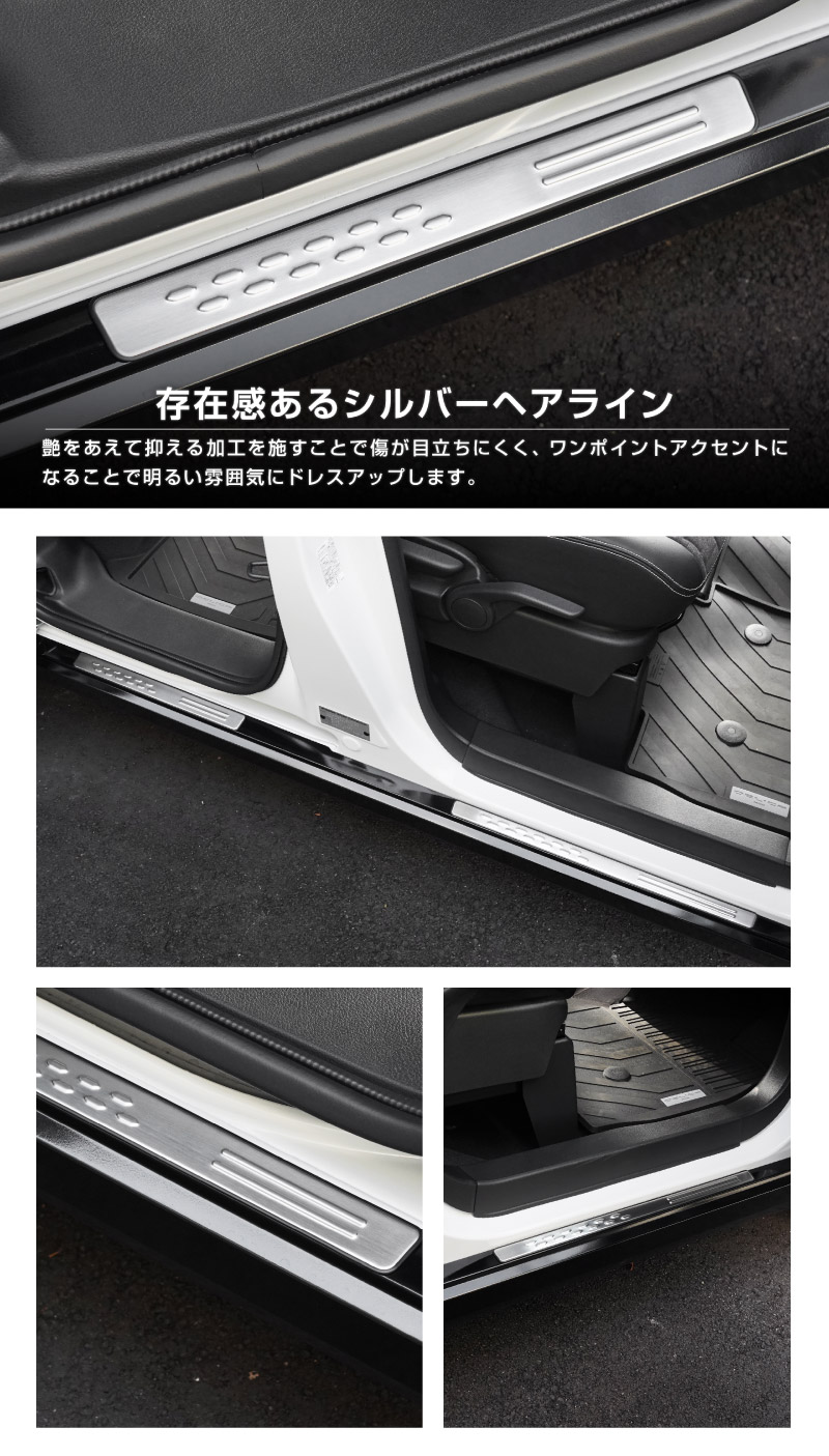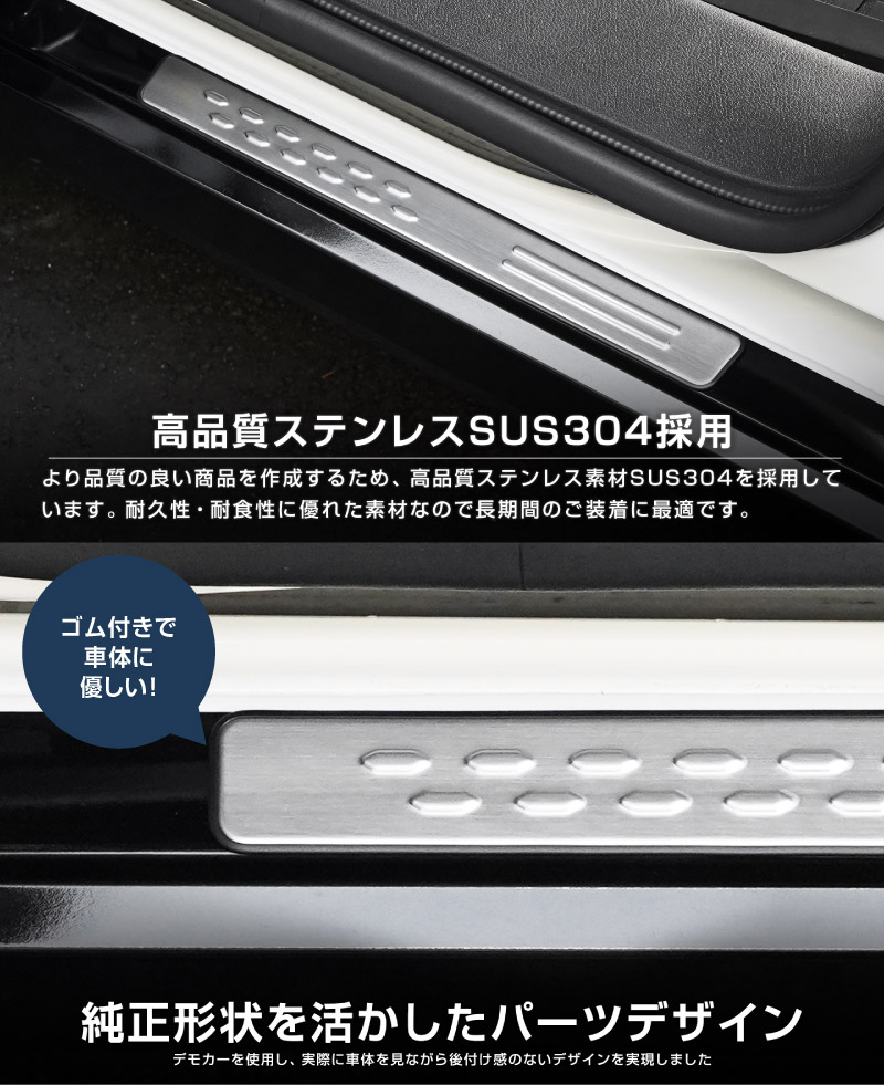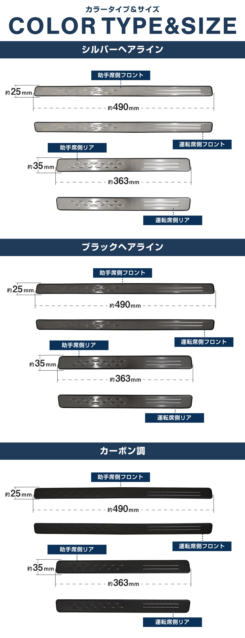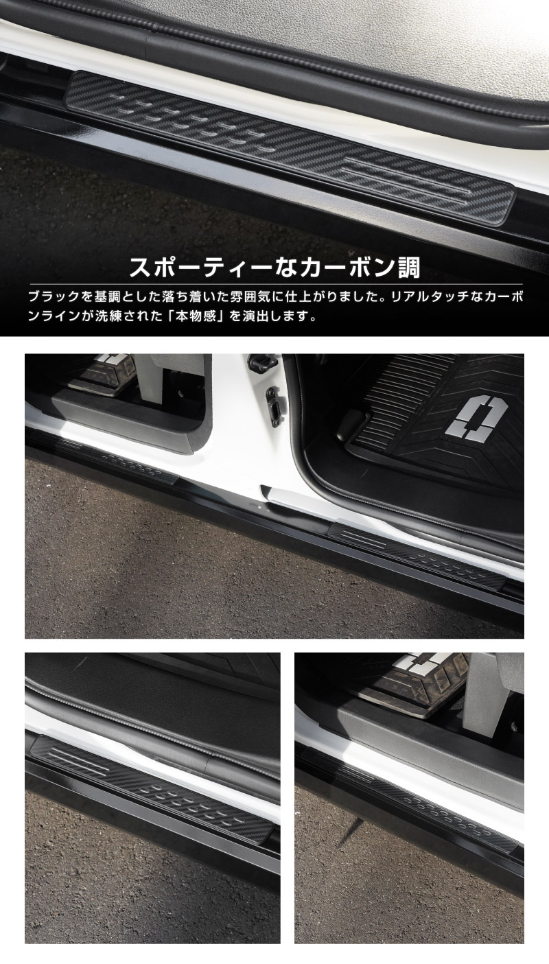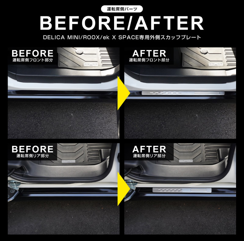 三菱 新型デリカミニ/ekスペース/ekクロススペース 日産 ルークス 共通 サイドステップ 外側スカッフプレート フロント・リアセット 4P 選べる3色 シルバー ブラック カーボン調 2025年フルモデルチェンジ後対応|MITSUBISHI DELICA MINI NISSAN ROOX 専用 内装 保護 カスタム パーツドレスアップ アクセサリー 社外品
