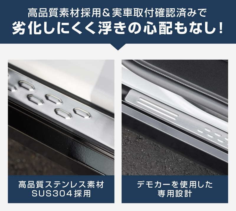 素材には耐久性に優れた高品質ステンレスを使用しているので、お車と一緒に末永くお付き合いいただけます。