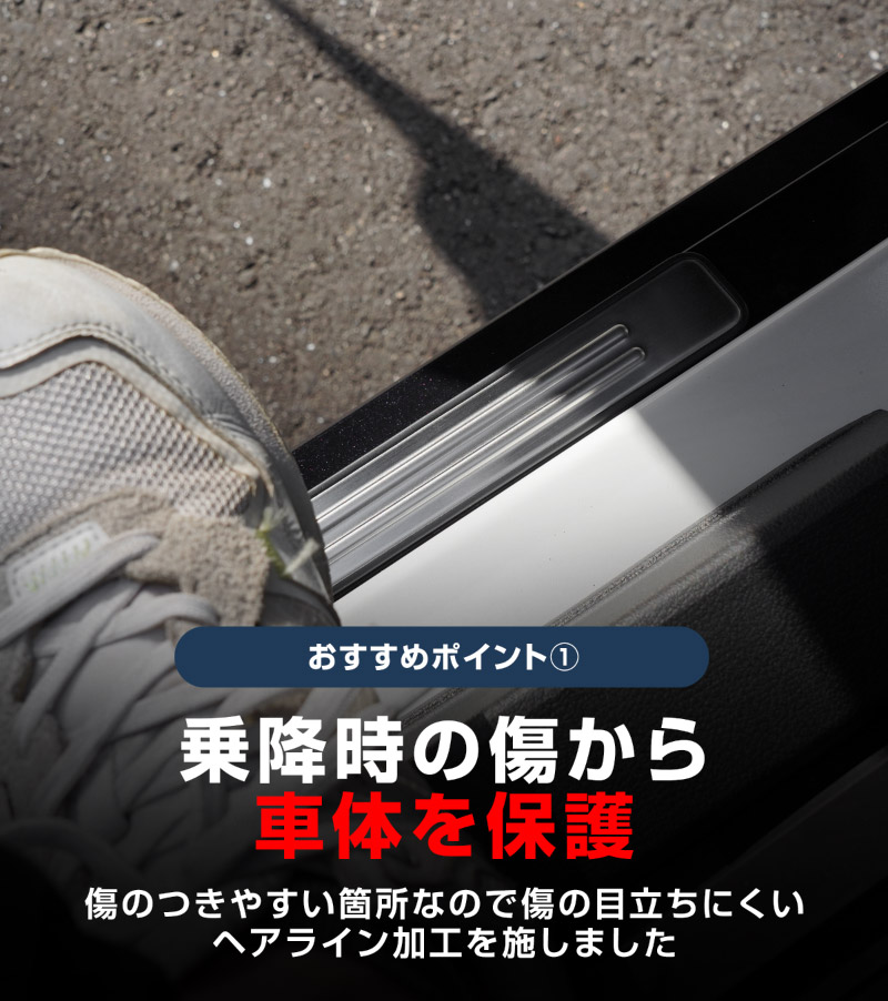乗り降りの際にできやすい踏み傷をしっかりガードします。