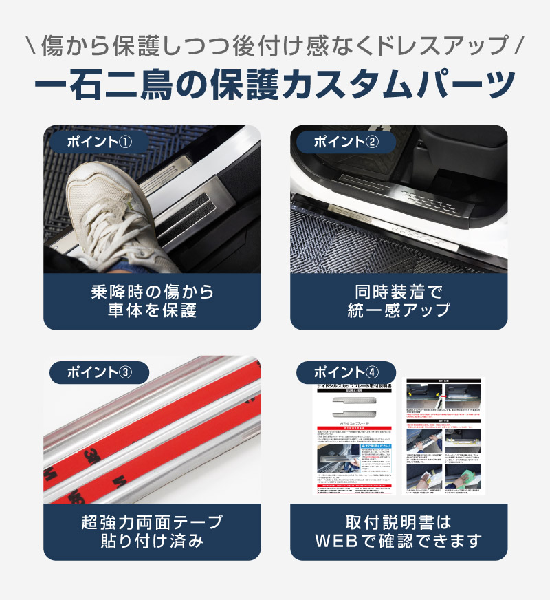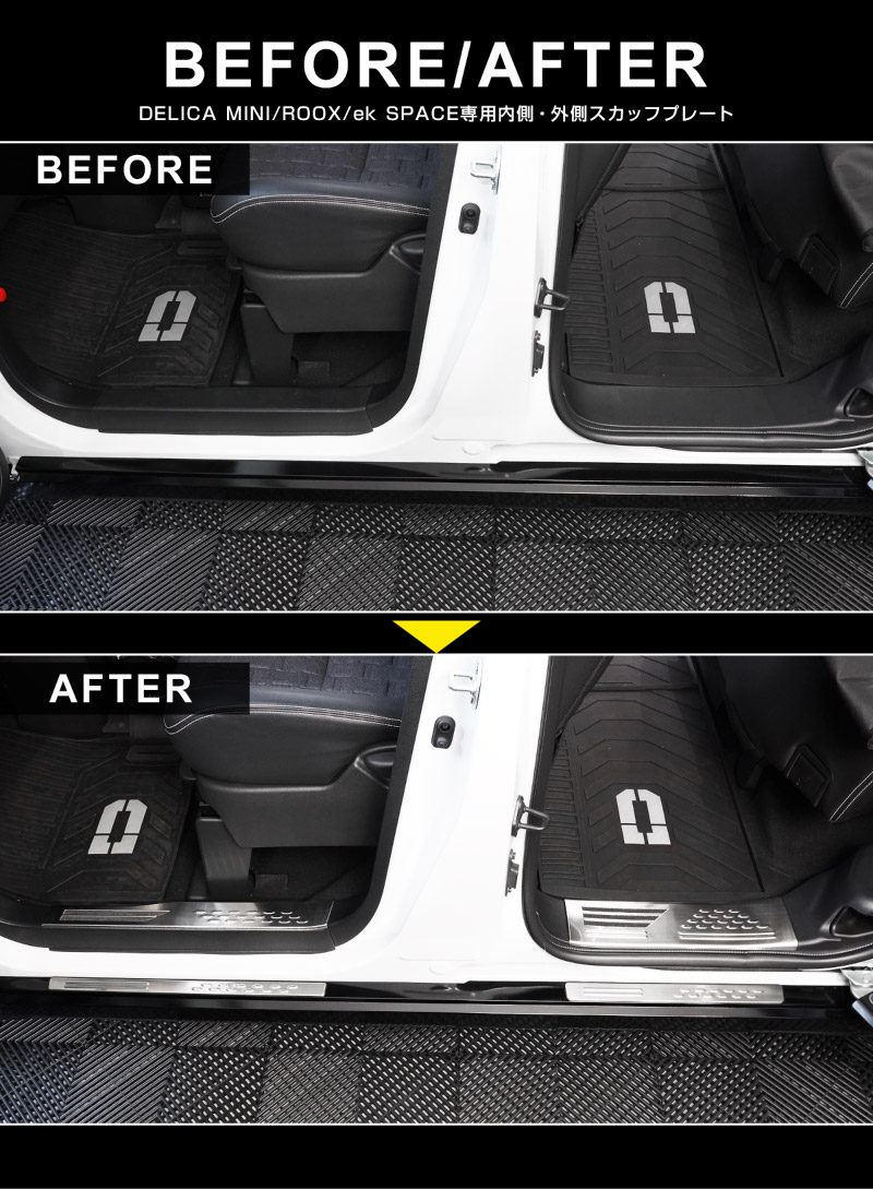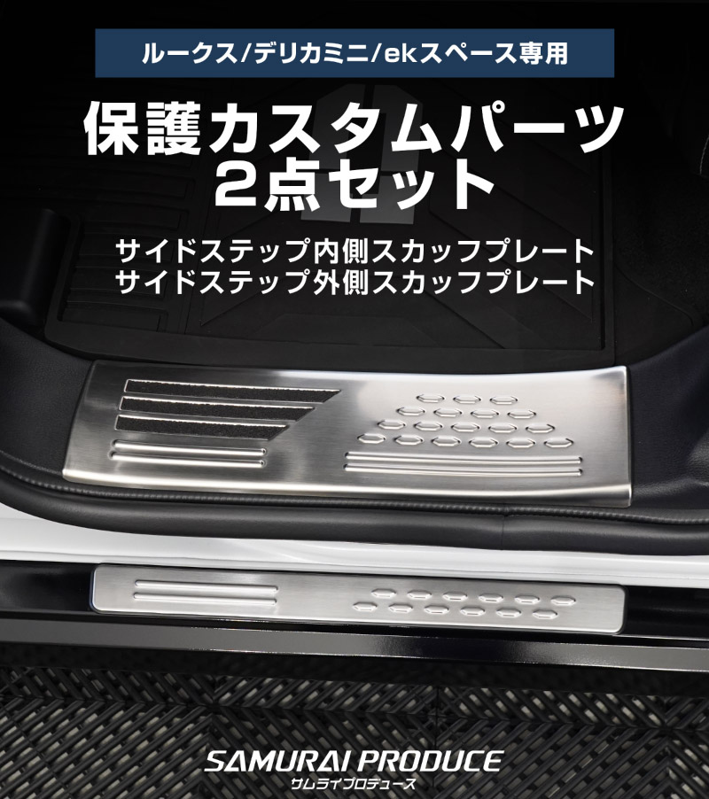 【セット割】三菱 新型デリカミニ/ekスペース/ekクロススペース 日産 ルークス 共通 サイドステップ スカッフプレート 内側スカッフプレート&外側 保護パーツセット 選べる3色 シルバー ブラック カーボン調 2025年フルモデルチェンジ後対応 |MITSUBISHI DELICA MINI NISSAN ROOX 専用ドレスアップ アクセサリー 社外品