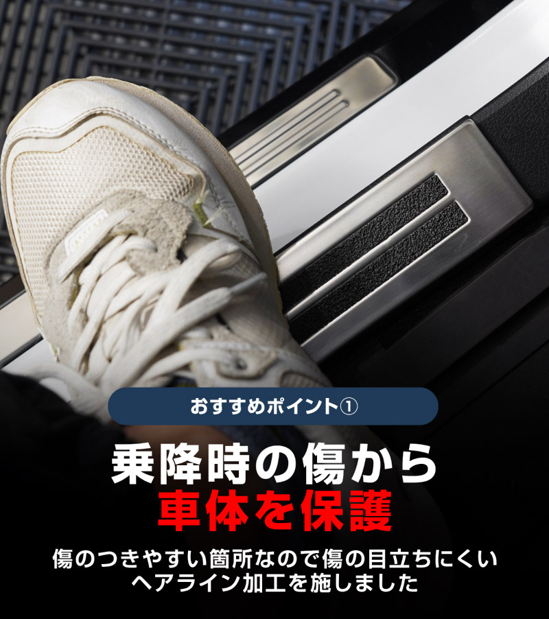 乗り降りの際にできやすい踏み傷をしっかりガードします。