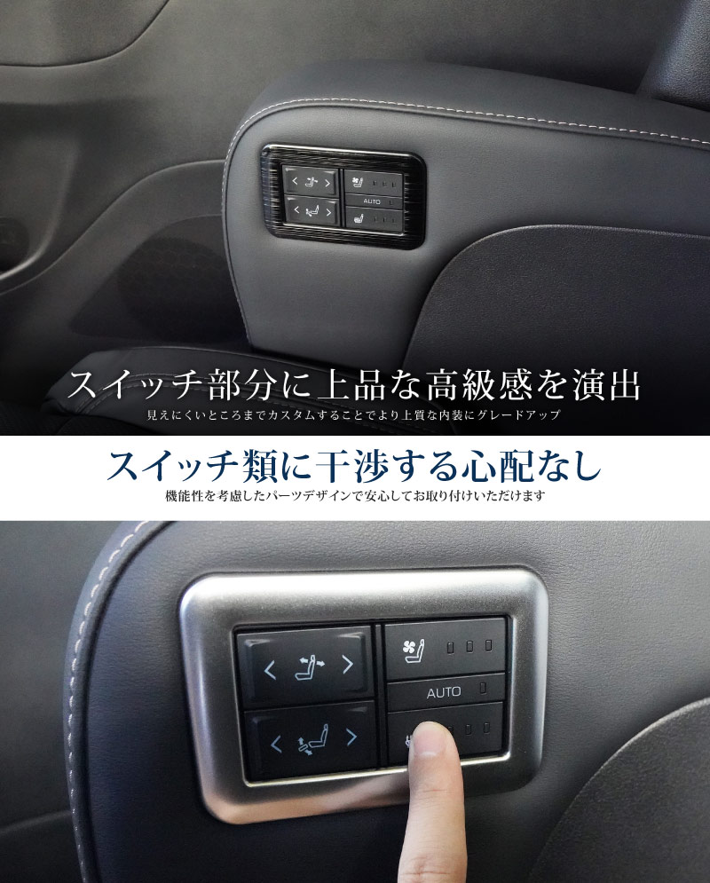 【セット割】新型アルファード/ヴェルファイア 40系 セカンドシートボタン周り&ウィンドウスイッチパネル 内装パーツセット 選べる3カラー 鏡面仕上げ サテンシルバー ブラックヘアライン|TOYOTA トヨタ ALPHARD VELLFIRE 専用 内装 インテリアパネル カスタム パーツ ドレスアップ アクセサリー 社外品