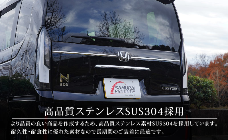 新型 N-BOXカスタム JF5 JF6 リアリップガーニッシュ 3P 鏡面仕上げ ステンレス製|ホンダ HONDA NBOX CUSTOM 専用 外装 リア カスタム パーツ アクセサリー 社外品 ドレスアップ