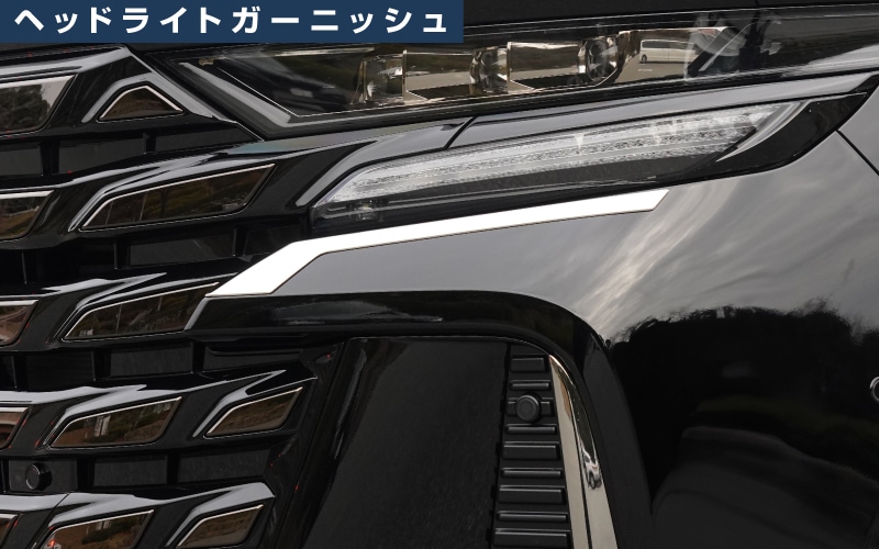 新型ヴェルファイア 40系 専用 ヘッドライトガーニッシュ 2P 鏡面仕上げ|TOYOTA トヨタ VELLFIRE 専用 外装 フロント アイライン カスタム パーツ ドレスアップ アクセサリー 社外品 エアロ