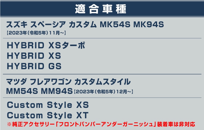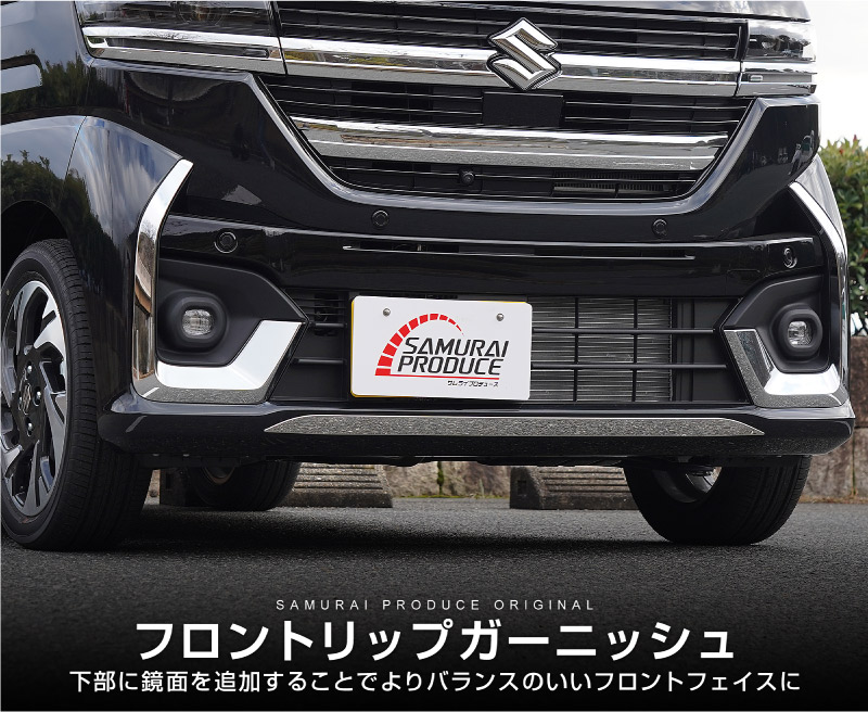 トップ > SUZUKI スズキ > スペーシア/スペーシアカスタム(令和5年11月〜)SPACIA MK54S/MK94S > 外装パーツ スペーシア/スペーシアカスタム(令和5年11月〜)SPACIA MK54S/MK94S > 新型 スペーシアカスタム MK54S MK94S フレアワゴンカスタムスタイル MM54S MM94S フロントリップガーニッシュ 1P 鏡面仕上げ|SUZUKI スズキ SPACIA CUSTOM マツダ MAZDA FLAIR WAGON Custom Style専用 外装 フロント カスタム パーツ ドレスアップ アクセサリー 社外品 エアロ【予約販売/2026年1月20日頃入荷予定】