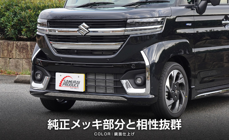 新型スペーシアカスタム MK54S MK94S フレアワゴンカスタムスタイル MM54S MM94S ロアグリルガーニッシュ 4P 鏡面仕上げ|SUZUKI スズキ SPACIA CUSTOM マツダ MAZDA FLAIR WAGON Custom Style専用 外装 フロント グリル カスタム パーツ ドレスアップ アクセサリー 社外品 エアロ