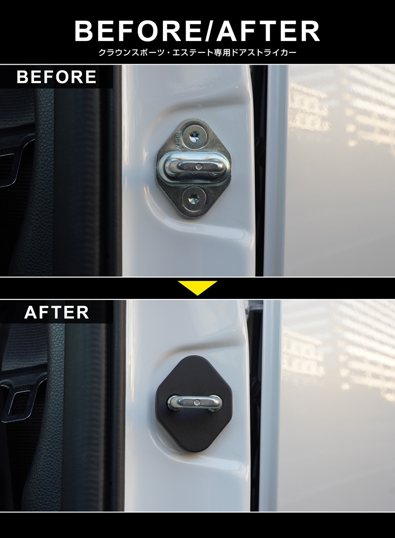 トップ > TOYOTA トヨタ > クラウン スポーツ/クロスオーバー(CROWN SPORT/CROSSOVER) > 内装パーツ クラウン スポーツ/クロスオーバー(CROWN SPORT/CROSSOVER) > クラウンスポーツ クラウンエステート 共通 ドアストライカーカバー 4P PP ブラック|TOYOTA トヨタ CROWN SPORT ESTATE AZSH36W AZSH37W PHEV AZSH39W AZSH38W 専用 内装 カスタム 保護パーツ ドアストッパーカバー ストライカーカバー ドレスアップ アクセサリー 社外品 エアロ オプション【メール便対象/代引き・配達日時指定不可】