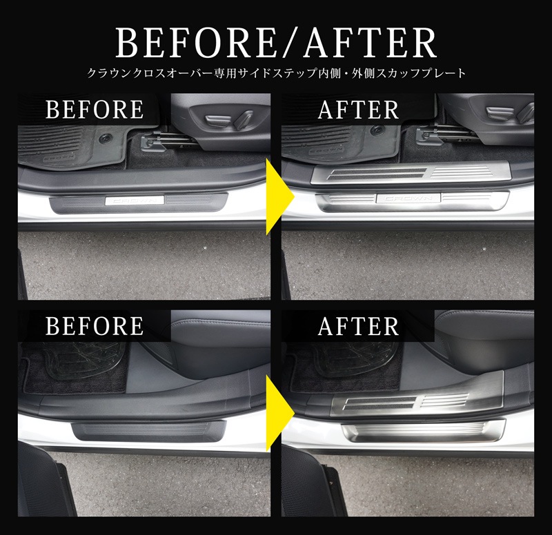 【2/15〜10%off】クラウンクロスオーバー サイドステップ 外側スカッフプレート フロント・リア 4P 選べる3色 シルバー ブラック カーボン調|TOYOTA トヨタ CROWN CROSSOVER TZSH35 AZSH35 専用 内装 保護 足元 カスタム パーツ ドレスアップ オプション アクセサリー 社外品