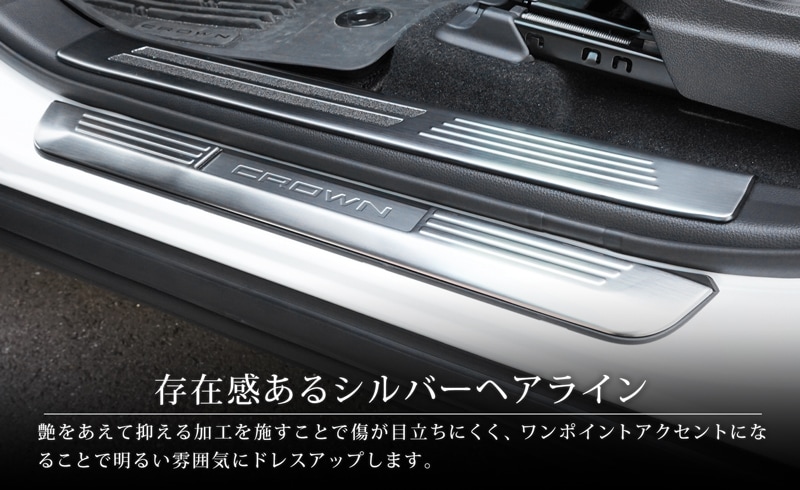 【2/15〜10%off】【セット割】クラウンスポーツ サイドステップ外側 スカッフプレート フロント・リア 左右 2点セット 4P 選べる3カラー シルバーヘアライン ブラックヘアライン カーボン調|TOYOTA トヨタ CROWN SPORT AZSH36W AZSH37W PHEV 専用 内装 保護 足元 カスタム パーツ ドレスアップ オプション アクセサリー 社外品【予約販売/シルバー・カーボン調:3月10日頃入荷予定】