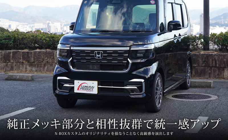 新型 N-BOXカスタム JF5 JF6 フロントバンパー左右 ガーニッシュ 2P ブラッククローム|ホンダ HONDA NBOX CUSTOM 専用 外装 フロント カスタム パーツ アクセサリー 社外品 ドレスアップ