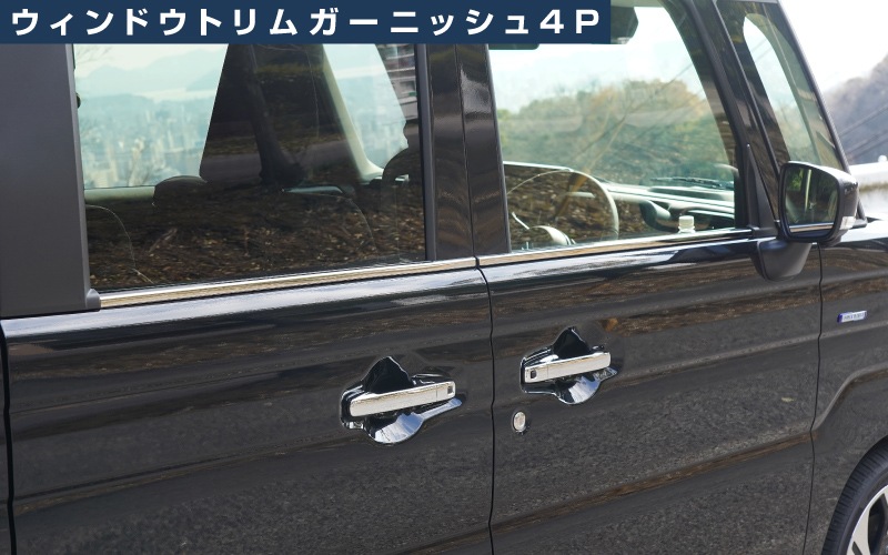 新型スペーシア スペーシアカスタム スペーシアギア MK54S MK94S フレアワゴン MM54S MM94S ウィンドウトリムガーニッシュ 4P 鏡面仕上げ|SUZUKI スズキ SPACIA CUSTOM GEAR マツダ MAZDA FLAIR WAGON 専用 外装 カスタム パーツ ドレスアップ アクセサリー 社外品 エアロ