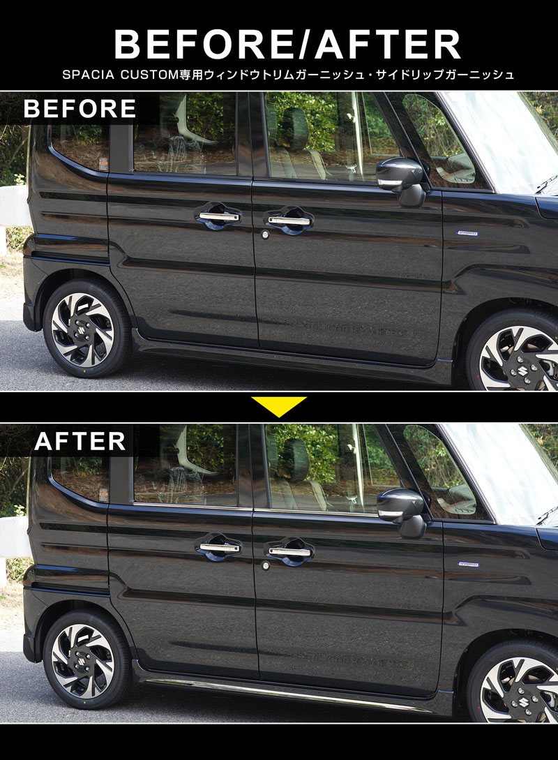 新型スペーシアカスタム MK54S MK94S フレアワゴンカスタムスタイル MM54S MM94S サイドリップガーニッシュ 4P 鏡面仕上げ|SUZUKI スズキ SPACIA CUSTOM マツダ MAZDA FLAIR WAGON Custom Style専用 外装 サイド カスタム パーツ ドレスアップ アクセサリー 社外品 エアロ