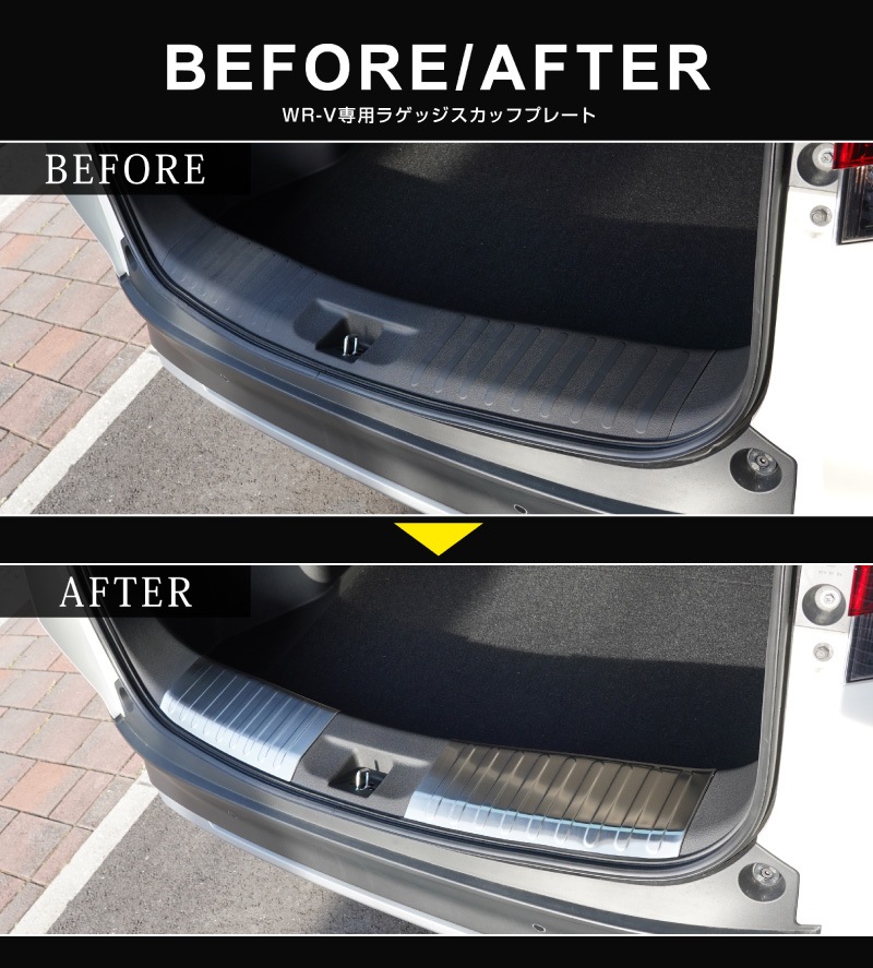 WR-V ラゲッジスカッフプレート 2P 車体保護ゴム付き 選べる3色 シルバー ブラック カーボン調|ホンダ HONDA WRV DG系 専用 内装 トランク 保護 傷防止 カスタム パーツ ドレスアップ アクセサリー 社外品