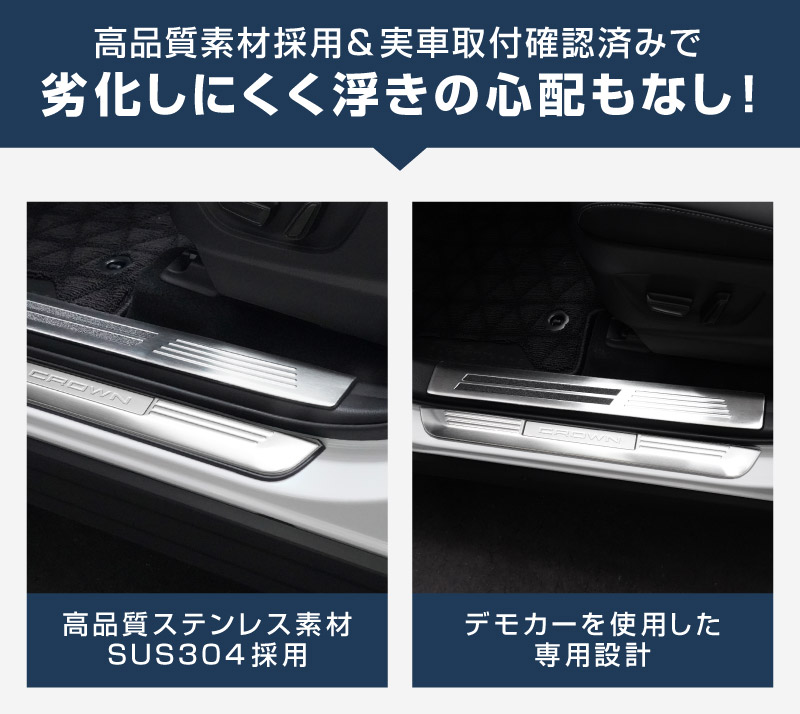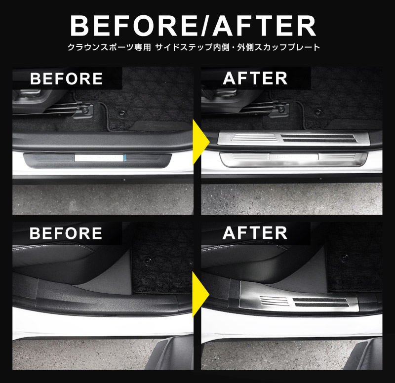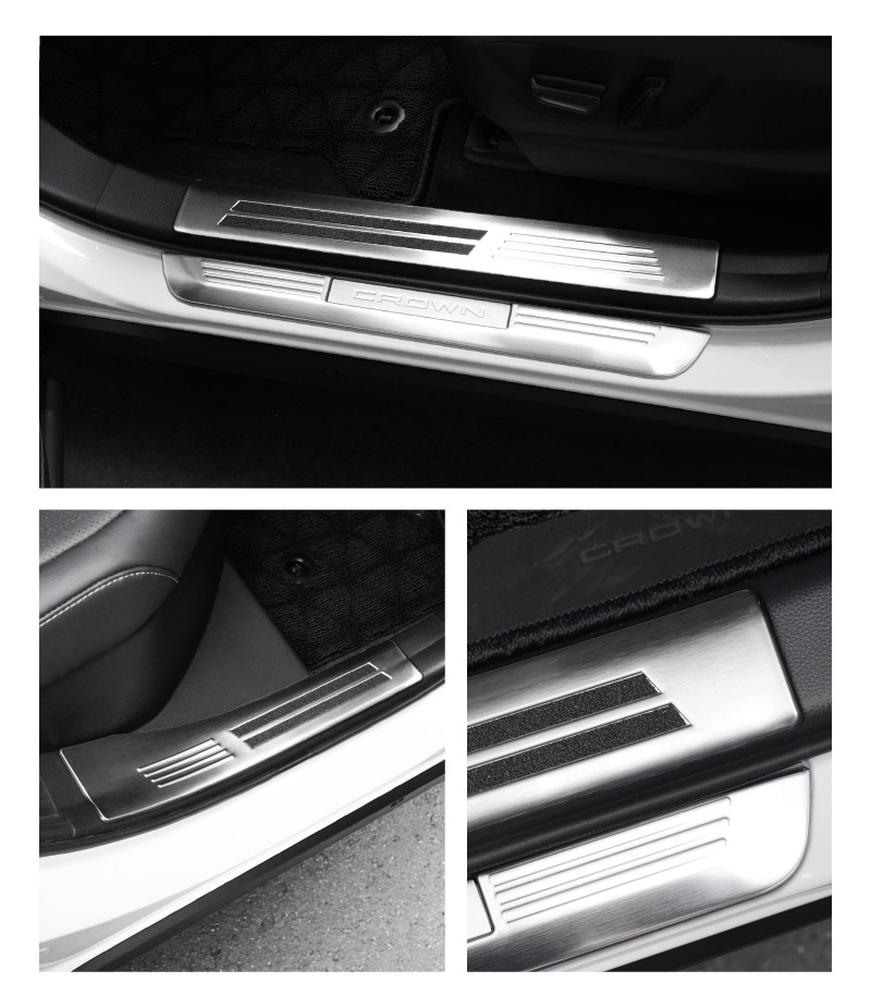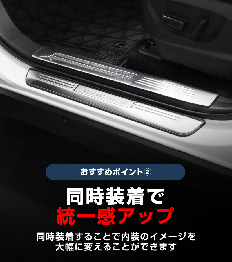 クラウンスポーツ サイドステップ 内側スカッフプレート 4P 選べる3色 シルバー ブラック カーボン調|TOYOTA トヨタ CROWN SPORT AZSH36W AZSH37W PHEV 専用 内装 保護 足元 カスタム パーツ ドレスアップ オプション アクセサリー 社外品