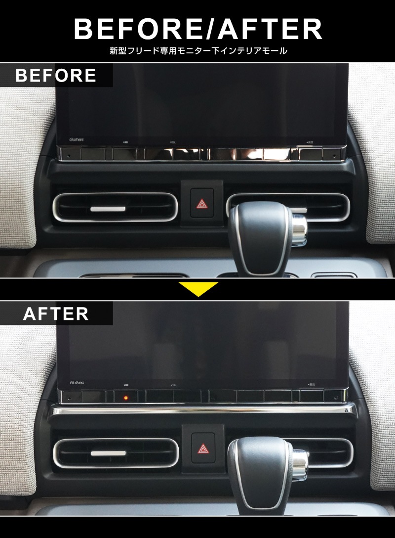 【セット割】新型フリード GT系 エアー クロスター モニター下インテリアモール & フロント左右エアコン吹き出し口パネル 2点セット 選べる2カラー サテンシルバー 鏡面仕上げ|ホンダ HONDA FREED AIR CROSSTAR 専用 内装 インテリア パネル ナビ回り 液晶 カーナビ カスタム パーツ ドレスアップ アクセサリー 社外品
