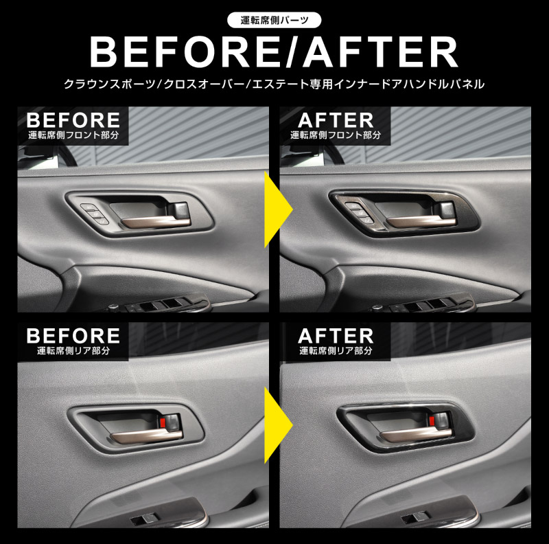 クラウンスポーツ クラウンクロスオーバー クラウンエステート 共通 インナードアハンドル インテリアパネル 4P ブラックパール|TOYOTA トヨタ CROWN SPORT CROSSOVER ESTATE TZSH35 AZSH35 AZSH39W AZSH38W 専用 内装 ドアノブ パネル カスタム パーツ ドレスアップ オプション アクセサリー 社外品