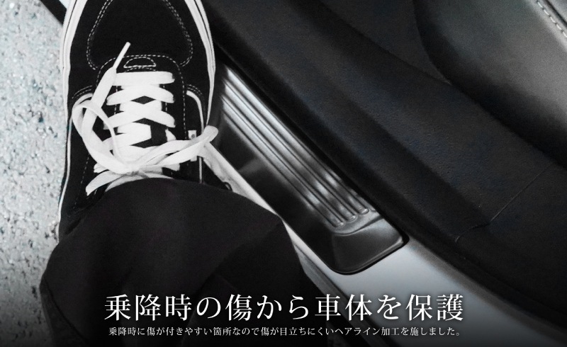 クラウンスポーツ サイドステップ外側 スカッフプレート リア 左右セット 2P 選べる3カラー シルバーヘアライン ブラックヘアライン カーボン調|TOYOTA トヨタ CROWN SPORT AZSH36W AZSH37W PHEV 専用 内装 保護 足元 カスタム パーツ ドレスアップ オプション アクセサリー 社外品【予約販売/シルバー:1月30日頃入荷予定】